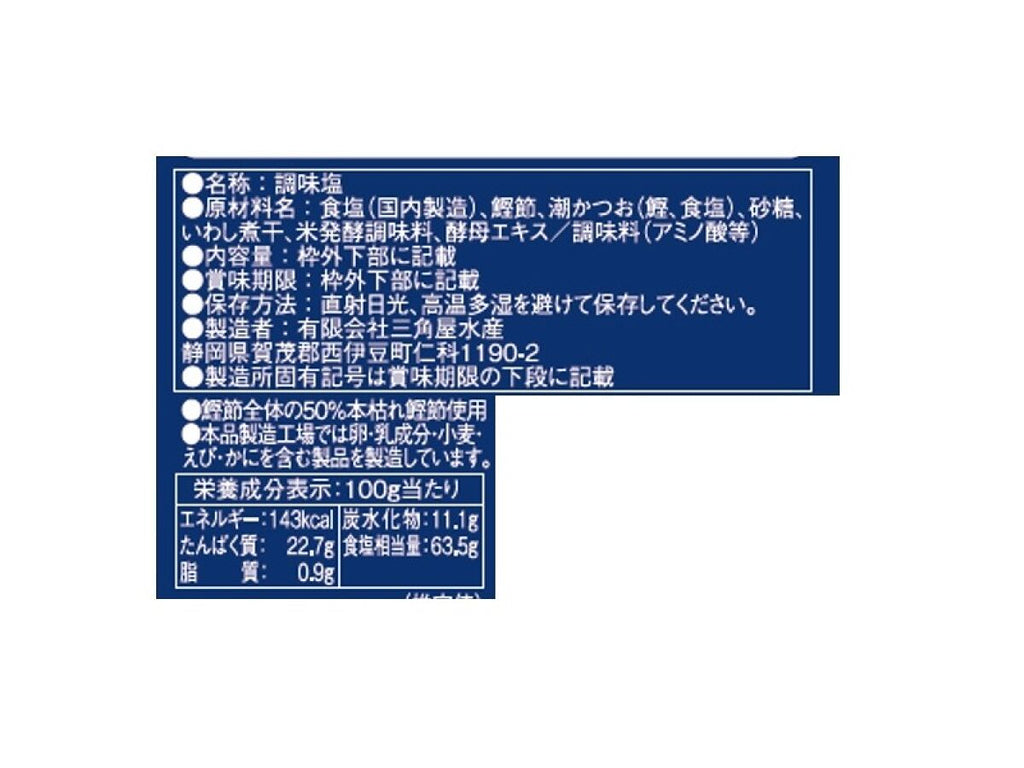 特徴:鰹節を中心にだしと塩をバランスよく混ぜ合わせました。