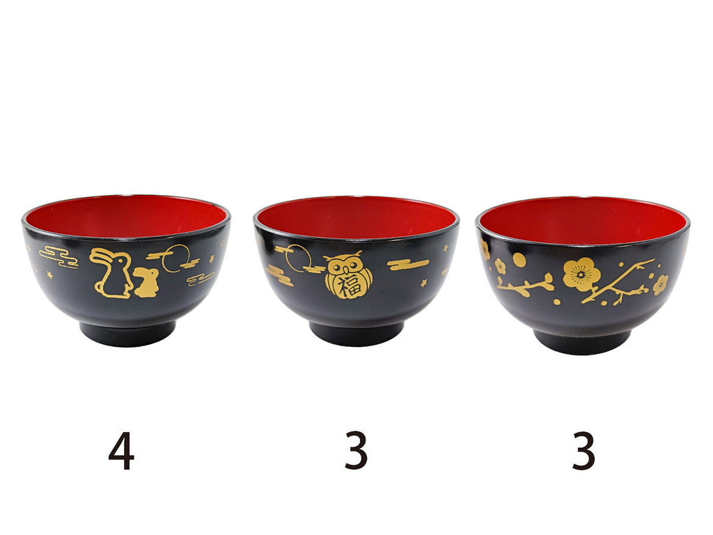 会津塗汁椀(食洗機対応、黒内朱、和柄)