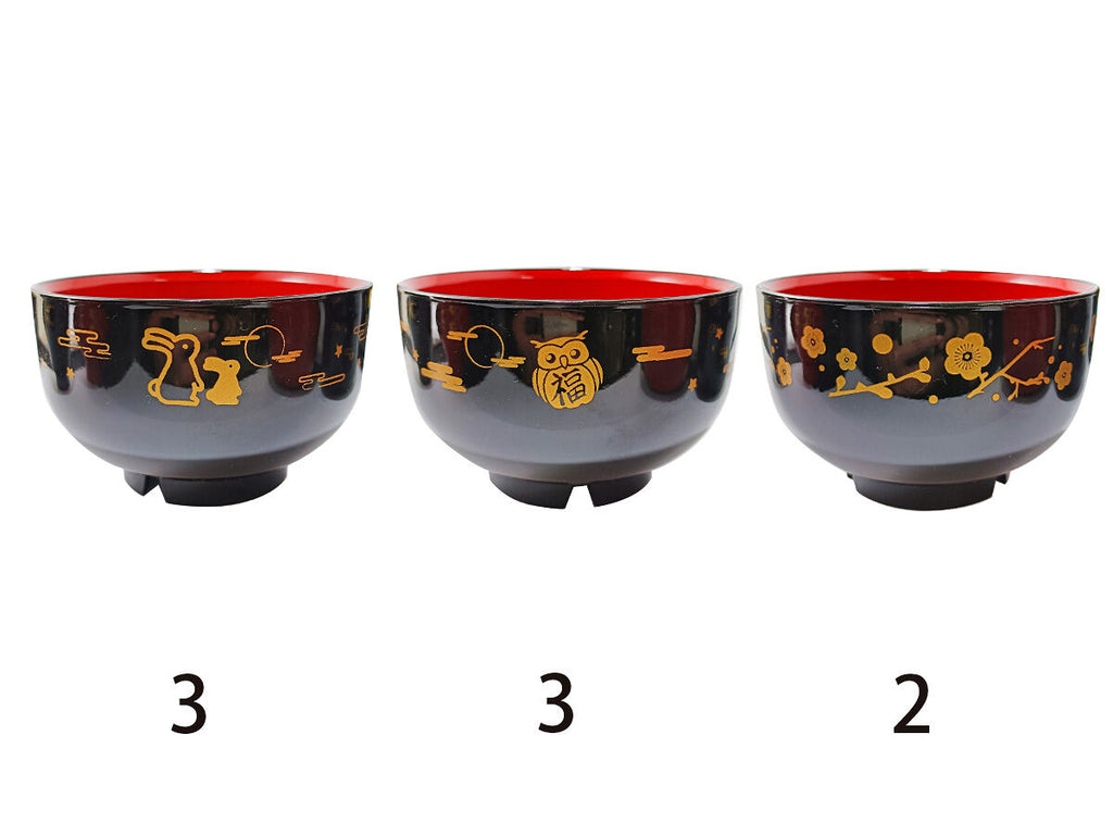会津塗宝生丼(食洗機対応、黒内朱、和柄)