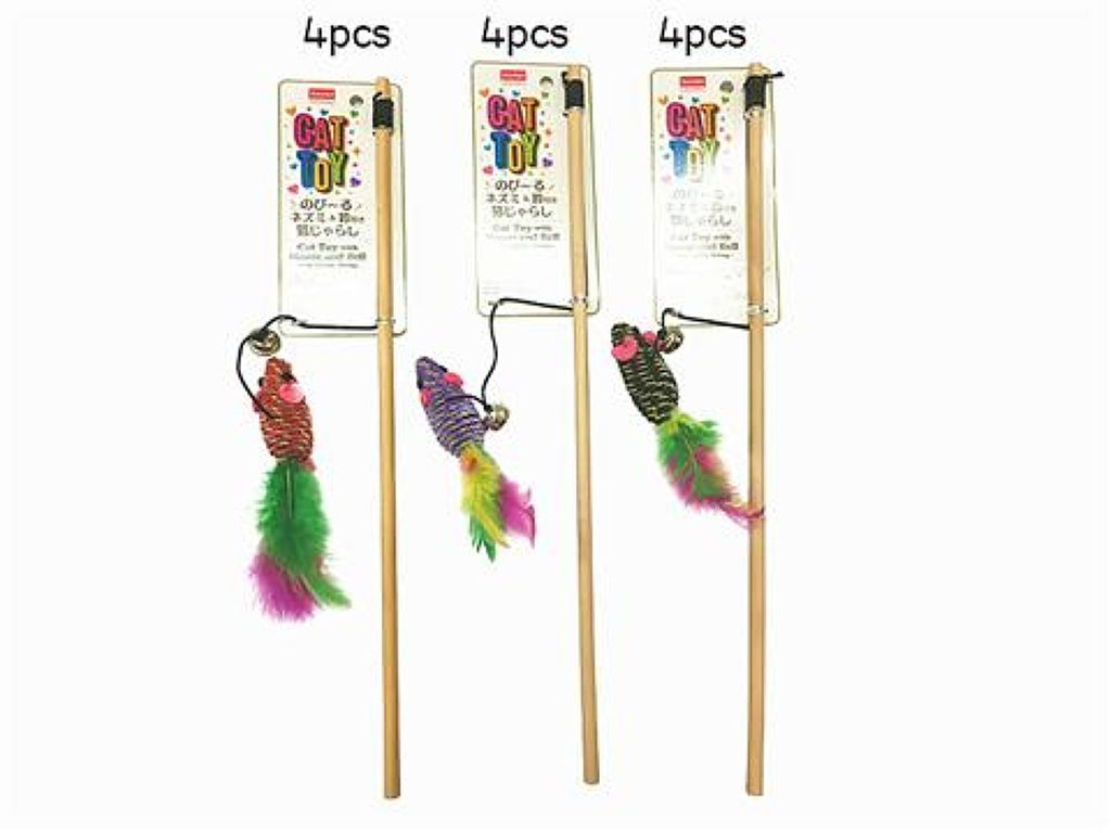 ひもが伸びる猫じゃらし(鈴付き、ネズミ)