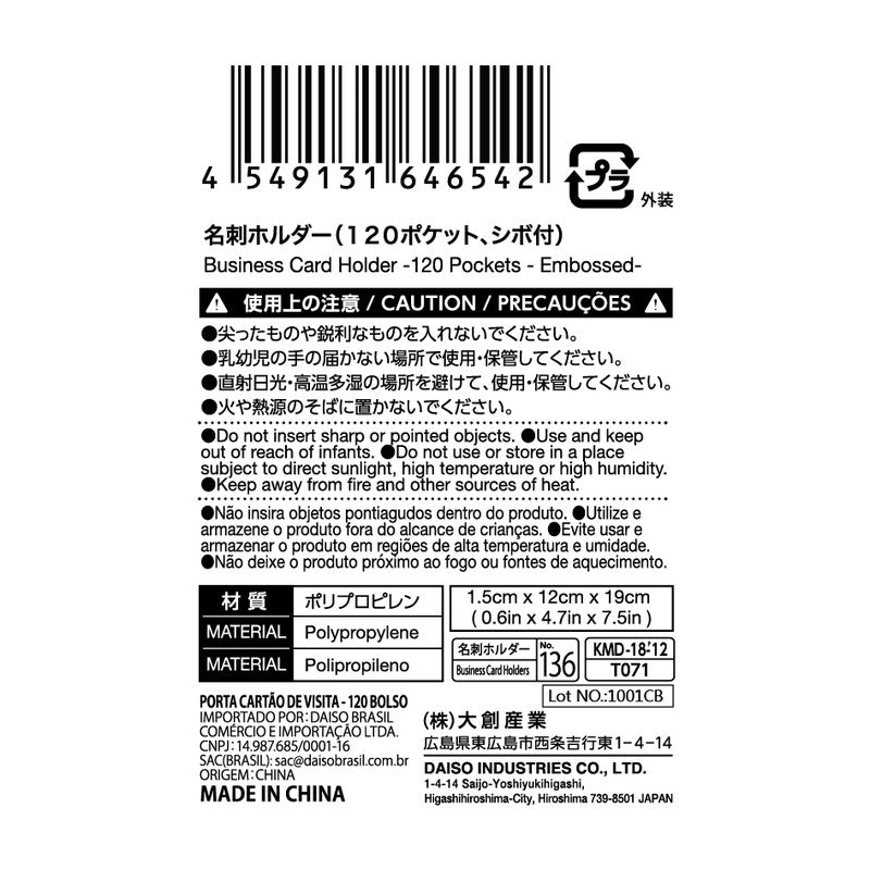 - 商品説明:名刺ホルダー120Pポケット シボ付
