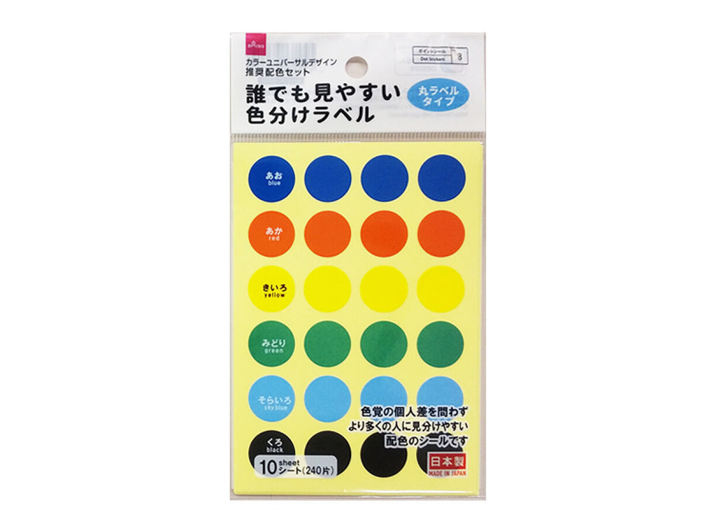 - 商品説明:カラーユニバーサルデザイン推奨配色セットオフィスや学校などの書類整理、情報共有の色分けラベルに!身近に多い「色を使ったコミュニケーション」でも、全員が同じ色に見えているとは限りません! 色の見え方が一般と異なる人にも情報ができるだけきちんと伝わるよう色使いに配慮したシールです。色覚の個人差を問わずより多くの人に見分けやすい配色のシールです。この商品は、カラーユニバーサルデザイン推奨配色セット制作委員会の「カラーユニバーサルデザイン推奨配色セット」の色値を反映させたものです。カラーユニバーサルデザイン推奨配色セット制作委員会 乳幼児の手の届かない場所に保管してください。肌に貼らないでください。直射日光・高温多湿の場所を避けて、使用・保管してください。火や熱源のそばに置かないでください。