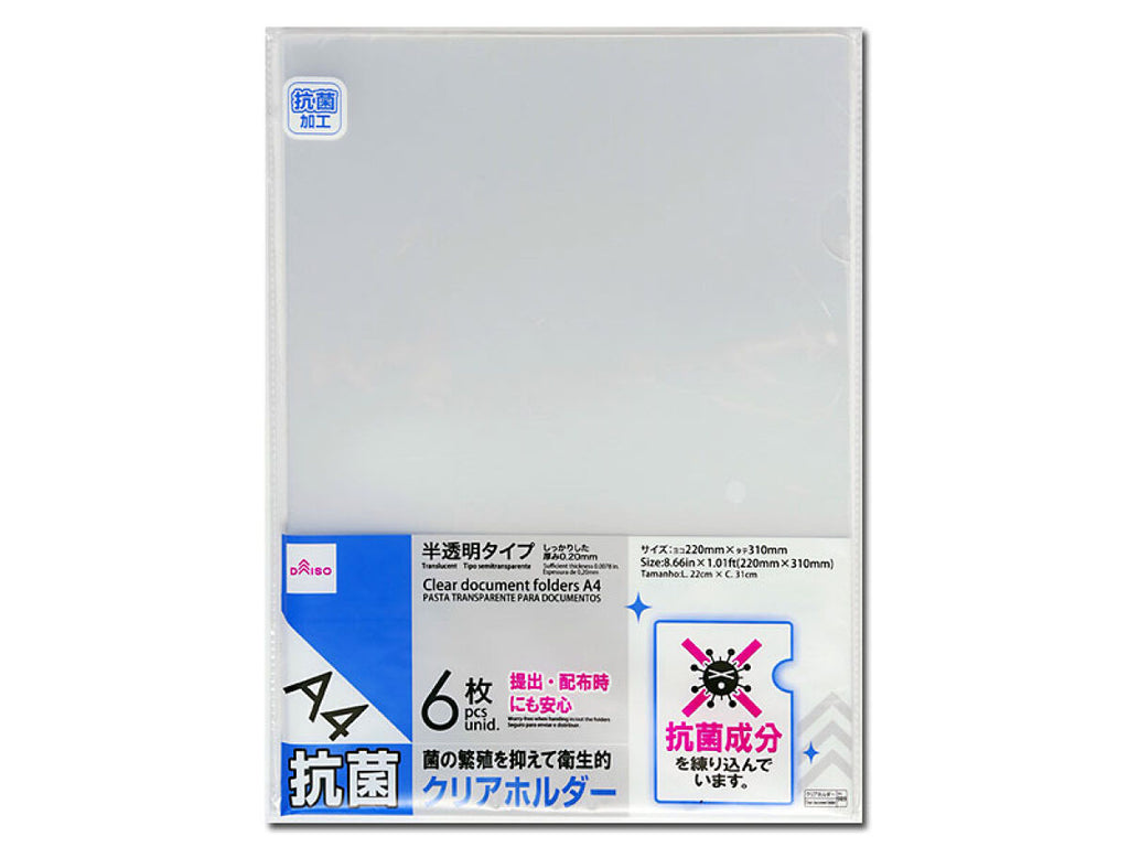- 商品説明:抗菌加工菌の繁殖を抑えて衛生的提出・配布時にも安心抗菌成分を練り込んでいます。_半透明タイプしっかりした厚み0.20mm_乳幼児の手の届かない場所に保管してください。直射日光・高温多湿の場所を避けて、保管してください。●インクジェット印刷紙、感光紙などのコピー紙や印刷物等は、よく乾燥させてから入れてください。●印刷物のインクなどが色移りすることがあります。●尖ったものや鋭利なものを入れないでください。●火や熱源のそばに置かないでください。●本来の用途以外に使用しないでください。