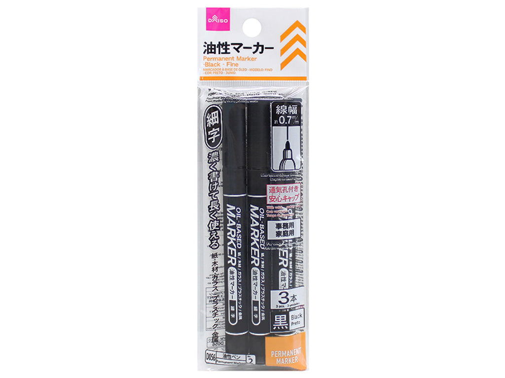油性マーカー(黒、細字、3本)3mL