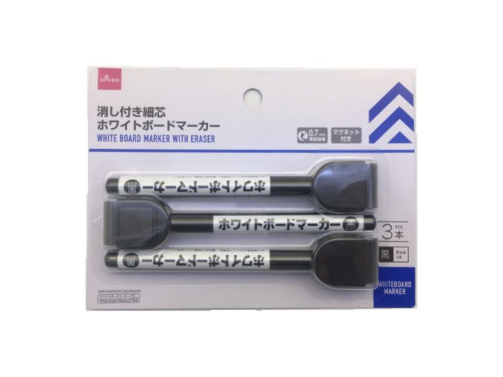 ホワイトボードマーカー(消し付、細芯、黒、3本)