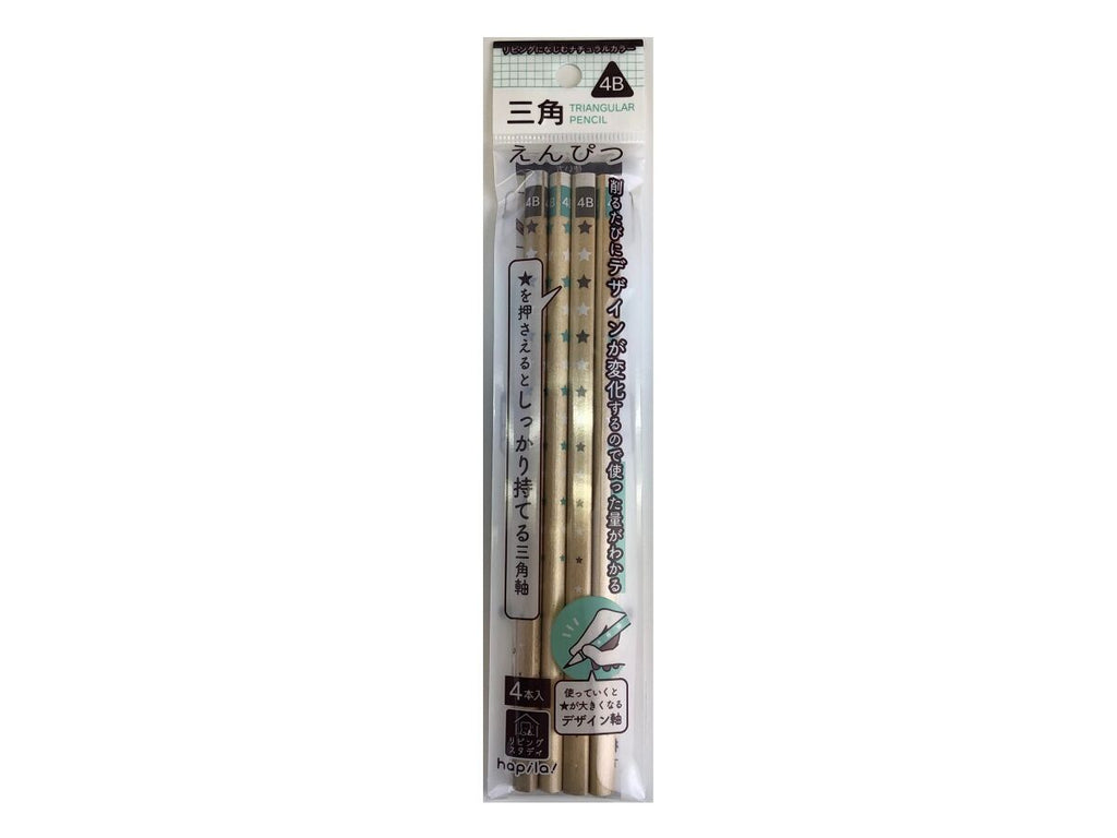 - 商品説明:三角えんぴつ4B リビングになじむナチュラルカラー 削るたびにデザインが変化するので使った量がわかる 使っていくと★が大きくなるデザイン軸 ★を押さえるとしっかり持てる三角軸 4本入 リビングスタディ 本商品のポイント 削っていくと★のサイズが変わっていくので使った量がわかる! おうち学習時のモチベーションUP_に! 親子間のコミュニケーションツールに!三角えんぴつの持ち方 三本の指で三辺を押さえることで自然と正しい持ち方が身に付きます 軸の★を押さえるとしっかり持つことができます本来の用途以外にはご使用にならないでください。 尖った芯は鋭利なため、取り扱いには十分ご注意ください。 小さなお子様の手の届かない場所で使用・保管してください。本体:木 種類:シナノキ(属:シナノキ、種:シナノキ) 本体:黒鉛 本体:粘土