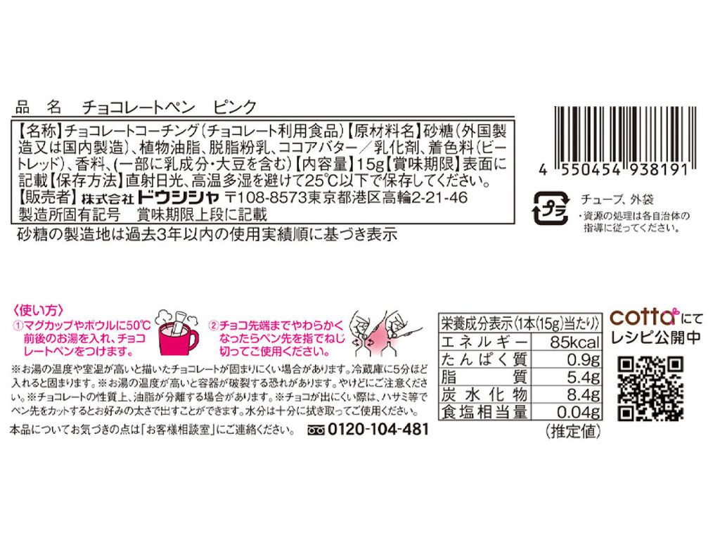 ドウシシャ チョコレートペン ピンク 13g13g×1本入