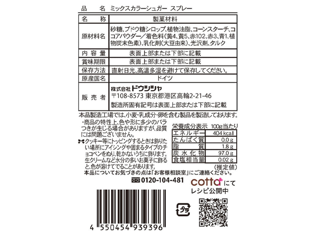 ドウシシャ ミックスカラーシュガースプレー 9g9g×1個入