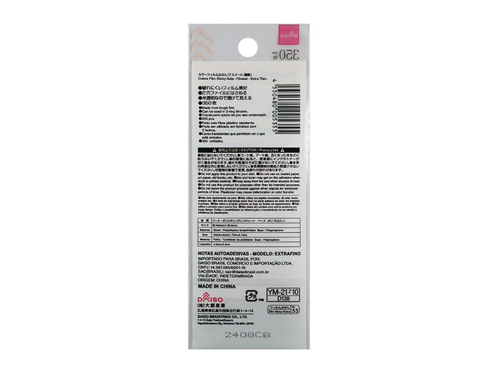 - 商品説明:破れにくいフィルム素材2穴ファイルにはさめる半透明なので透けて見える350枚●肌に貼らないでください、●火や熱源のそばに置かないでください、●本来の用途以外に使用しないでください_●コート紙、アート紙、古くなった本などに貼らないでください。●印刷物に貼ると、接着面にインクやトナーが付く場合があります。●長期間他の製品と密着させないでください。可塑剤の影響で変質、色移りの恐れがあります。