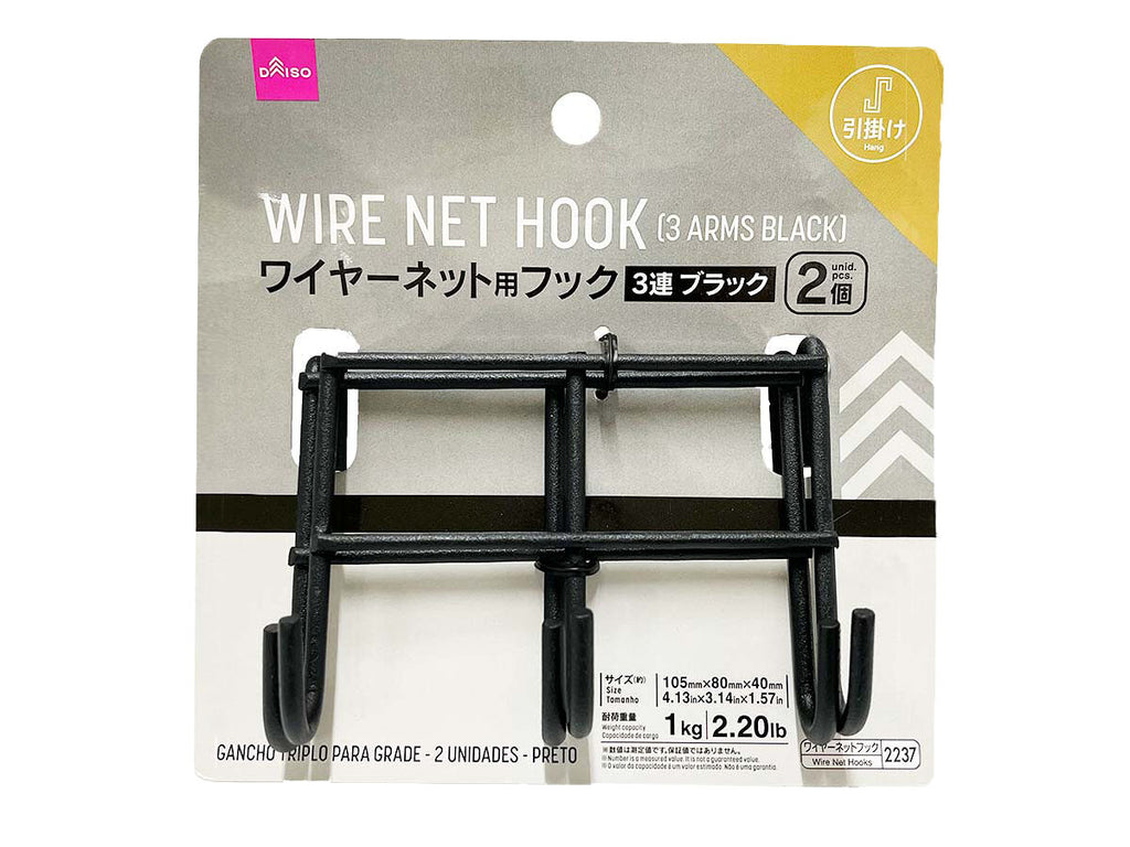 ワイヤーネット用フック(2個、3連、ブラック)
