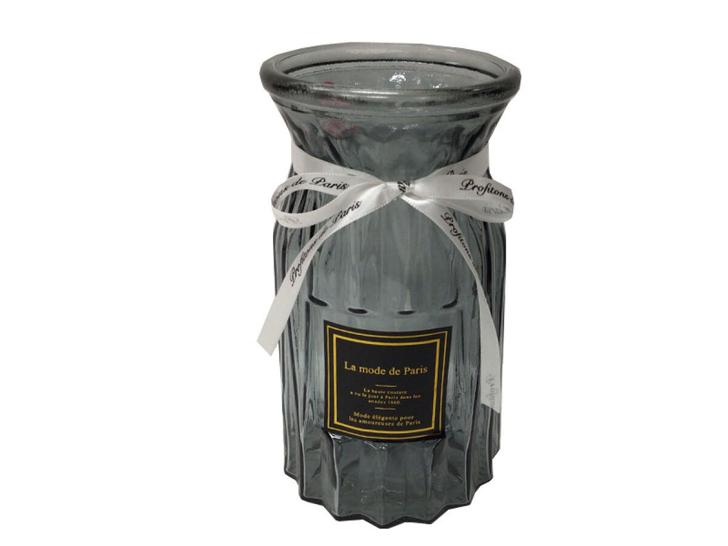 ガラス花瓶(グレー、φ10cm×H17.7cm、口部外φ9.4cm)