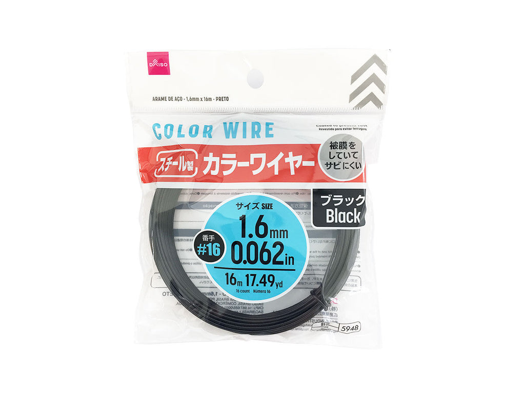 スチール製カラーワイヤー(1.6mm×16m、ブラック)