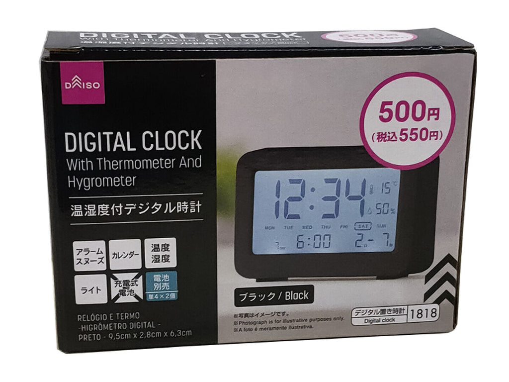 温湿度付デジタル時計(ブラック、9.5cm×2.8cm×6.3cm)