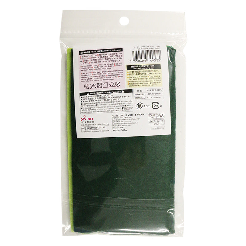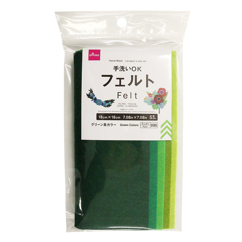 フェルト(グリーン系カラー、5枚)