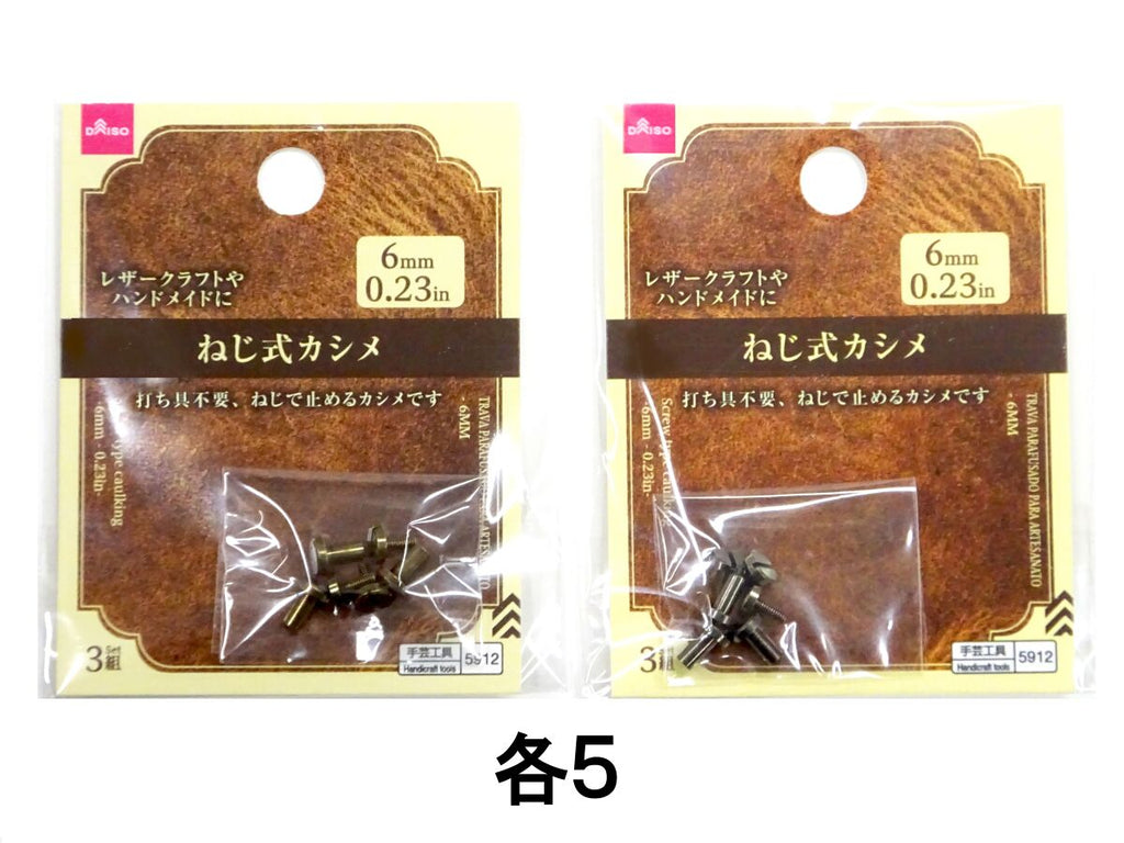 - 商品説明:レザークラフトやハンドメイドに 3個入●イラストはイメージです。穴に通し、ねじでかしめる 取り外しも容易です 革や紙など、多用途に使用できます。打ち具不要で簡単・静かに作業できる アンティーク調ゴールドカラー/アンティーク調シルバーカラーかしめる枚数や厚みにあったものを使用してください。あけた穴に通します。ねじで固定して完成。 サイズ:高さ内寸6mm ヘッド径6mm 軸径3mm ●洗濯しないでください。●乳幼児の手の届かない場所で使用・保管してください。●変形・破損した場合、直ちに使用を中止してください。●火や熱源のそばに置かないでください。
