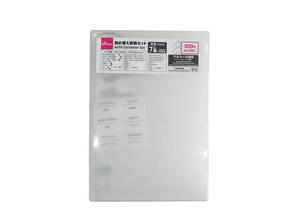 - 材質:ボトル(本体):ポリエチレン、ボトル(蓋):ポリプロピレン、クリームケース(本体):AS樹脂、クリームケース(蓋):ポリプロピレン、スポイト:ポリエチレン、じょうご:ポリプロピレン、ヘラ:ポリプロピレン、ブラシ:ポリプロピレン、ケース:ポリプロピレン