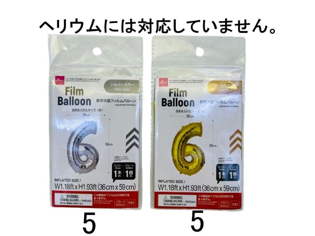 数字大型フィルムバルーン(6、ゴールドカラー&シルバーカラー)