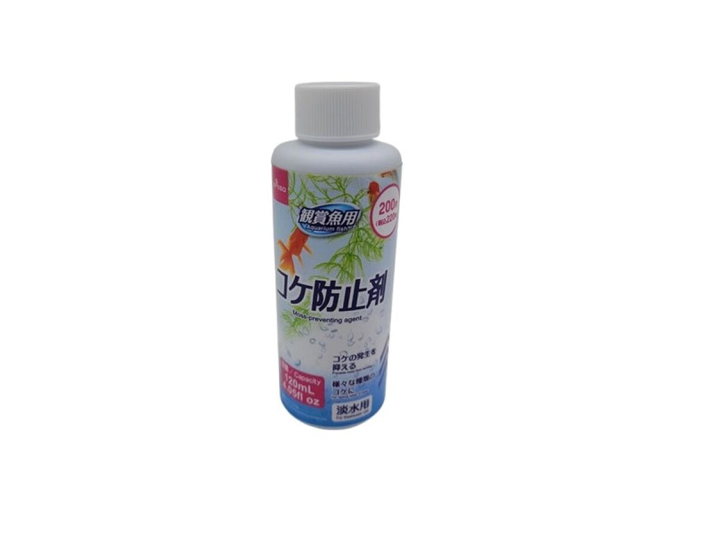 - 商品説明:淡水用 容量120mL●写真はイメージです。●イラストはイメージです。●コケの発生を抑える ●様々な種類のコケに●商品の特殊成分により水槽内の光合成を防ぎ、コケの生成を抑制 ●特有の青い成分は水をきれいに見せる効果があり、色はなくなりません。水換え時に除去可能●水槽設置時、水換え時に使用してください。 ●使用前にボトルを振って混ぜてください。 ①水槽に使用する水量に応じて、表の使用量の目安を参考に液量を計ります。 ②水に液を入れ、かき混ぜます。(使用目安:月2回) ※液の調整は別容器で行ってください。 ※詳しい使用方法は専門書を参考にしてください。 ※既に発生したコケをなくすことはできません。 ※液を入れた後、水が青くなり透明になりません。 <使用量の目安> 水量 約40L 使用量 7.5ml(キャップ1杯) ※容量を守ってください。 ※エビや甲殻類がいる場合は使用量の1/2の量で使用してください。銅、銅成分はありません。●直射日光・高温多湿の場所を避けて、保管してください。●キャップを閉めて保管してください。●本品は淡水観賞魚用です。 ●使用量を守って使用してください。 ●水槽の中