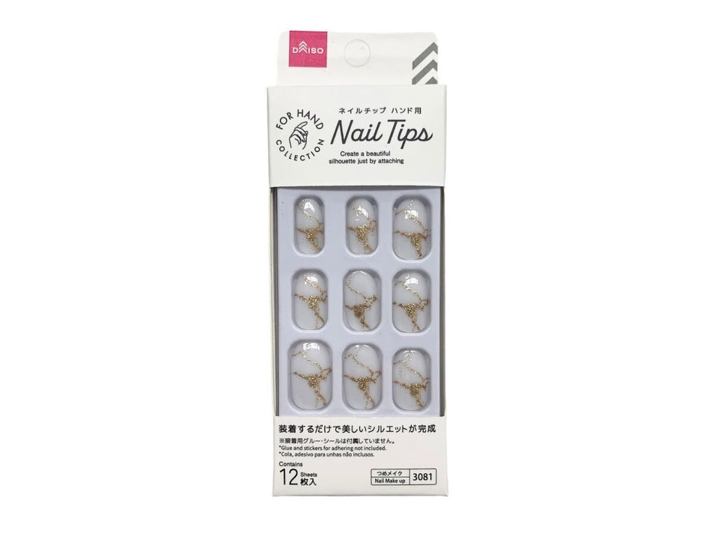 ネイルチップ(ハンド、大理石柄ホワイトゴールドカラー)