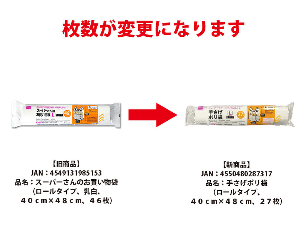 手さげポリ袋(ロールタイプ、40cm×48cm、27枚)