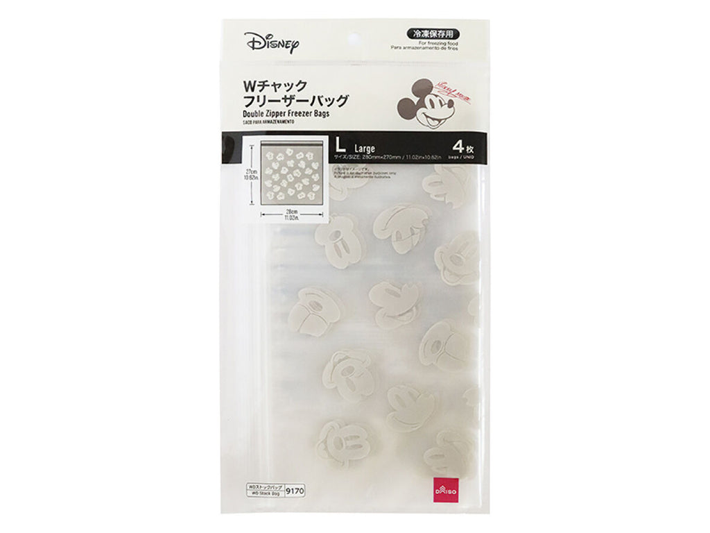 Wチャックフリーザーバッグ、280mm×270mm、4枚(ミッキー)CN、DC5