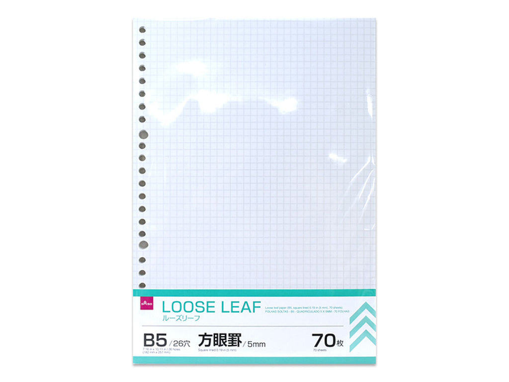 ルーズリーフ(B5、5mm方眼罫、70枚)