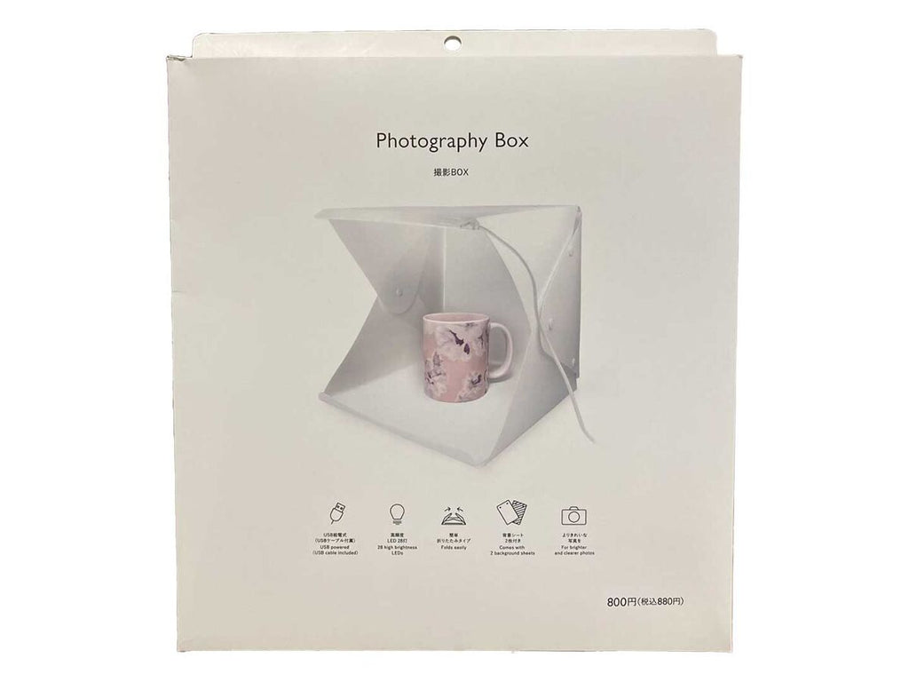 - 商品説明:撮影BOX高輝度LED_28灯簡単折りたたみタイプよりきれいな写真をスナップボタンで簡単に組み立てられる撮影ボックスですハンドメイド・フリマ出品商品の撮影に高輝度LEDで影ができにくく撮影場所を選ばずに写真撮影できます黒・白の背景シート付 被写体に応じて使い分けができます※生産に万全を期しておりますが、万一不良の場合にはお買い上げ店にてお取り替えさせていただきます。本品使用目的以外の使用に起因するなど、本品の欠陥に基づかない損害については当社では責任を負いかねます。あらかじめご了承の上お買い求めください。(日本語のみ)※商品の仕様および外観などは商品改良のため予告なく変更することがあります。※パッケージに記載の社名および製品名は各社の商標または登録商標になります。※写真・イラストはイメージです。USB給電式(USBケーブル付属)背景シート2枚付き※ACアダプタが別途必要です。※組み立てにくいときは、一度撮影ボックス本体の側面部分を外側にひろげてください。※折りたたむ際は、必ず撮影ボックス本体が冷えたことを確認してから組み立て方法と逆の手順でおこなってください。異臭・異音・変形・発煙や破損などの異常が見られ