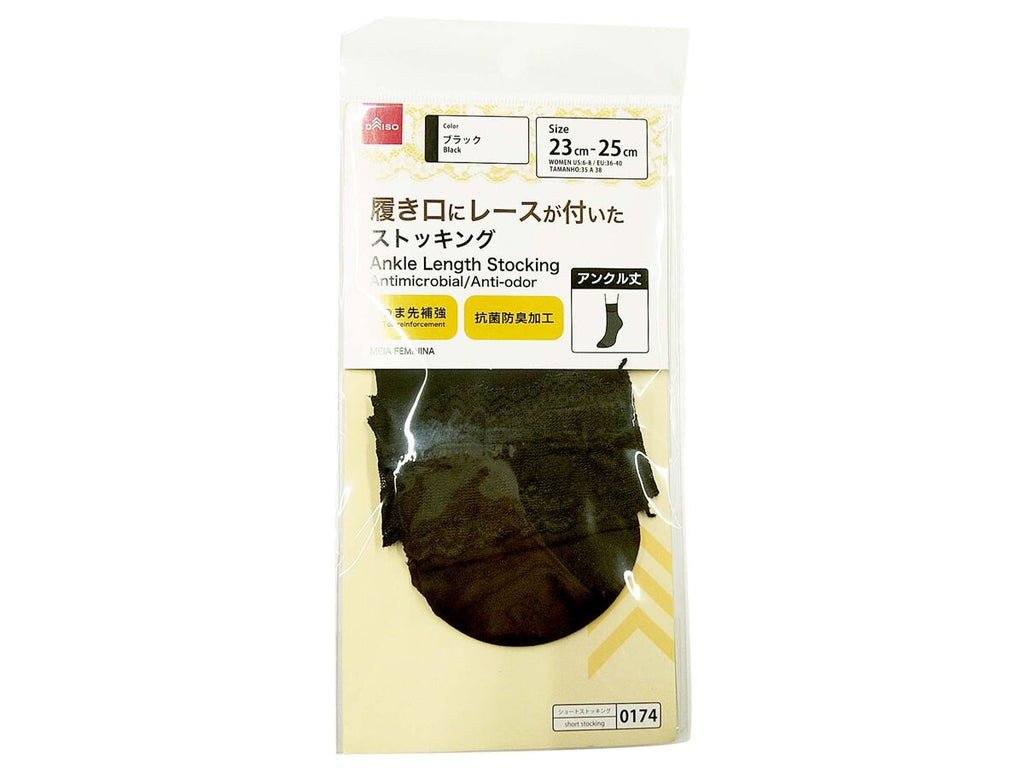 抗菌防臭レース付アンクル丈ストッキング(ブラック)23cm―25cm