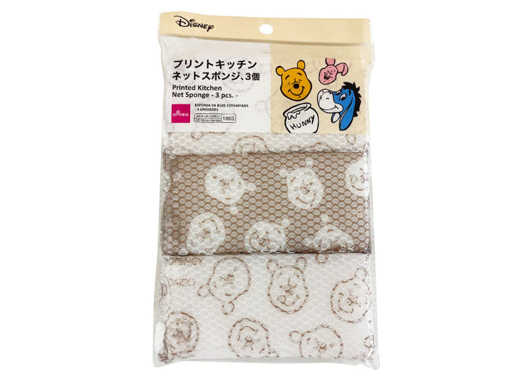 プリントキッチンネットスポンジ、3個(くまのプーさん)