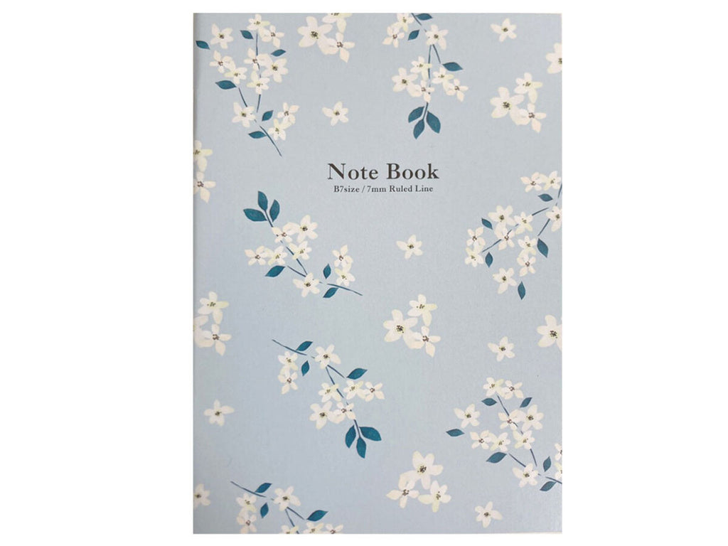 水彩柄ノート(B7、7mm罫線、64ページ、ブルー)