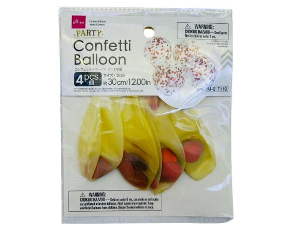 コンフェッティバルーン、4個(ハート吹雪)12インチ