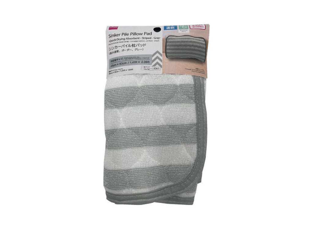 シンカーパイル枕パッド(吸水速乾、ボーダー、グレー)
