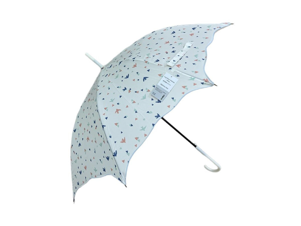 - 商品説明:裾が波形でおしゃれなジャンプ式長傘です。骨の一部に繊維強化プラスチックを使用しています。 ジャンプ式親骨の長さ/60cm×8本サイズ/全長:89cm 開傘時直径:102cm 使用後は乾いた布などで拭いて、陰干ししてください。/汚れた場合は、水をしみ込ませた布などで汚れを拭き取ってください。●直射日光・高温多湿の場所を避けて、保管してください。●乳幼児の手の届かない場所に保管してください。鋭利な部分があります。振り回したりしないでください。/開閉時は、顔や身体から離して使用してください。/開閉時に手や指を挟まないよう、注意してください。/骨にグラスファイバーを使用しています。●折り曲げたグラスファイバーは表面にガラス繊維の先端が露出することがありますので素手で触らないでください。ガラス繊維が皮膚に刺さって痛みが続く場合は、医師の診察・処置を受けてください。●強風時は使用しないでください。●変形・破損した場合、直ちに使用を中止してください。●火や熱源のそばに置かないでください。●本来の用途以外に使用しないでください。