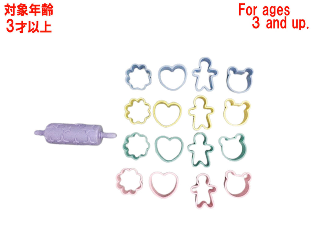 - 単品サイズ:クッキーローラー:4.4cm×16.5cm×4.4cm、人形:4.8cm×6.5cm×2cm、クマ:4.5cm×5cm×2cm、ハート:5.4cm×5cm×2cm、花:5.2cm×5.2cm×2cm