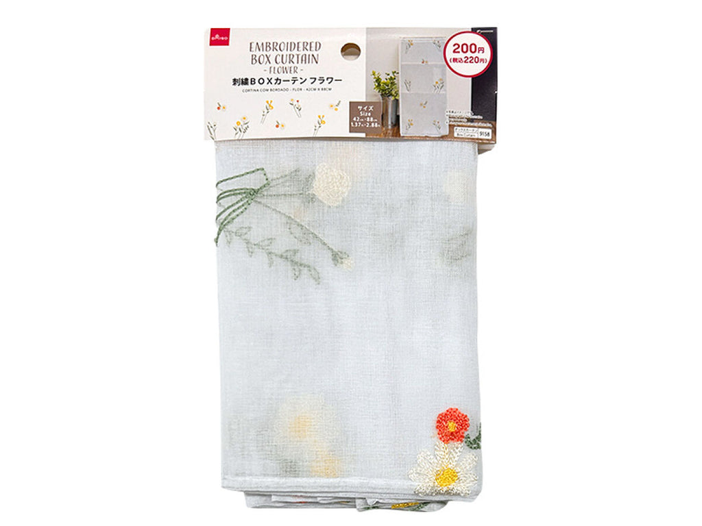 刺繍BOXカーテン(フラワー、42cm×88cm)
