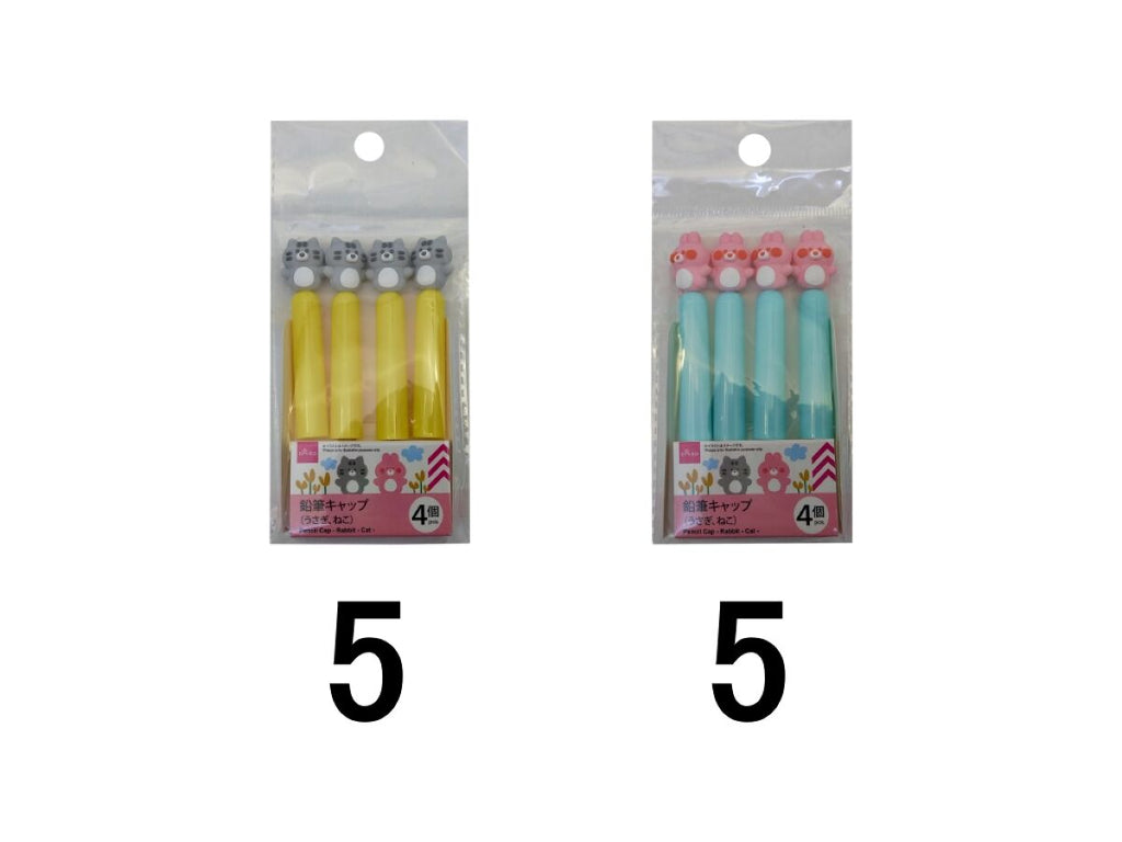 鉛筆キャップ(うさぎ、ねこ、4個)