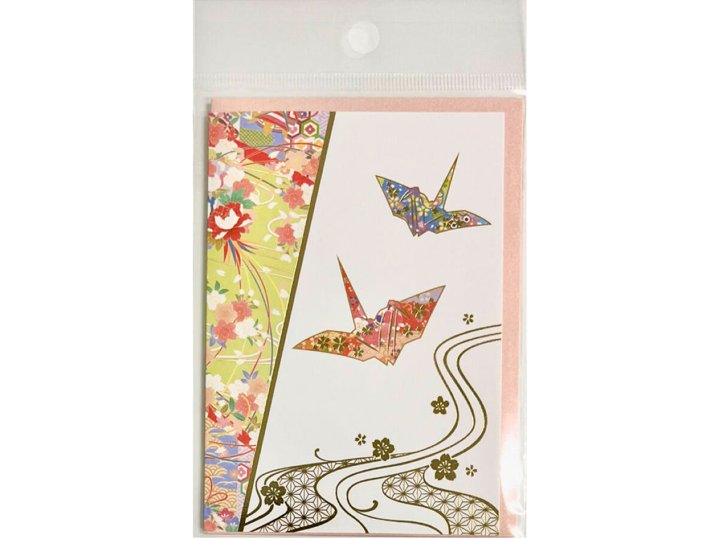和風グリーティングカード(封筒付、折り鶴と流水)