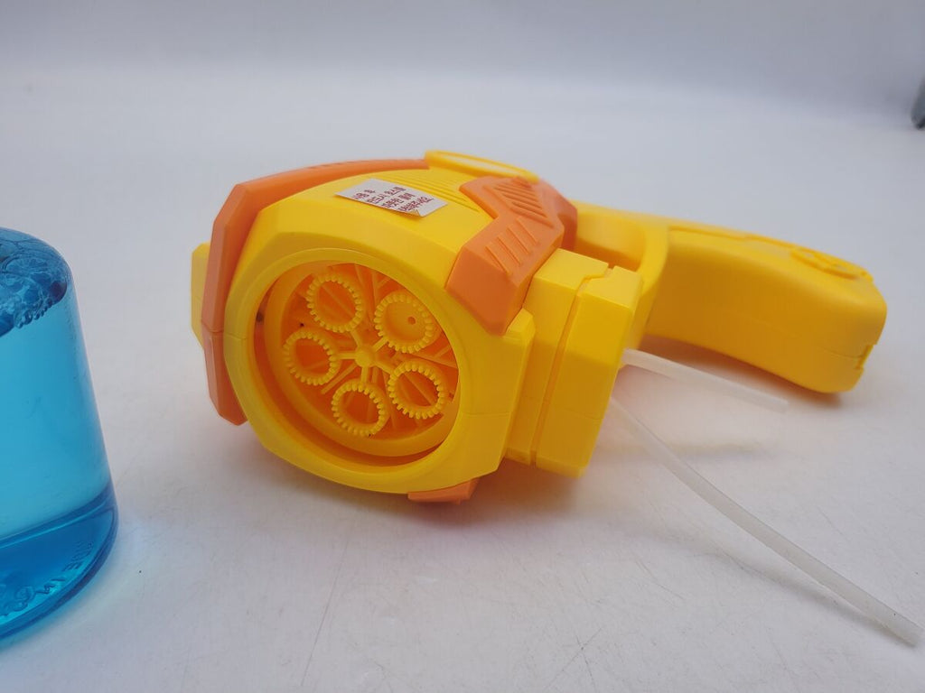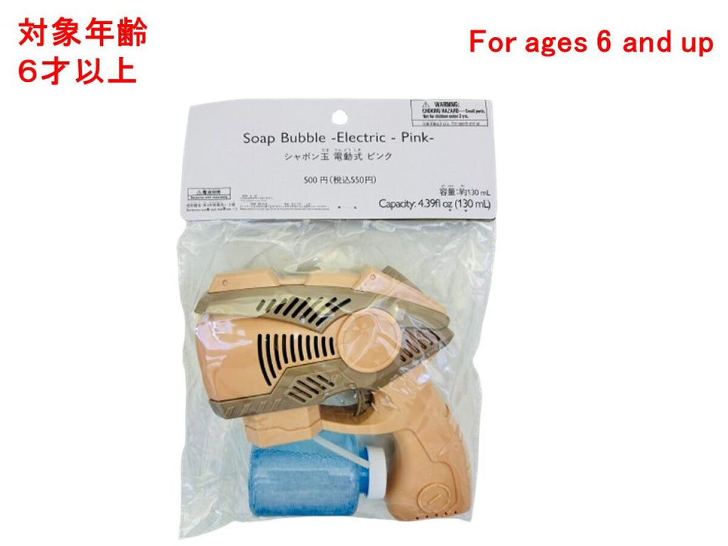 - 商品説明:※本品は飲み物ではありません。※シャボン玉液は液体石鹸ではありません。本来の用途以外には使用しないでください。電池別売使用電池:単3形乾電池x3個容量:約130mL●イラストはイメージです。対象年齢6才以上電圧:4.5V電流:0.6A消費電力:2.7W※アルカリ乾電池使用推奨<電池の入れ方>①電池ボックスのフタをドライバーで開けます。②表示に従い、単3形乾電池の+/ーを正しく入れてフタを閉じます。<遊び方>①シャボン玉液のフタを開け、本体チューブを容器の中に入れます。②シャボン玉液の容器と本体をしっかり固定します。③引き金を引くと、シャボン玉が出ます。※最初に使用する時は、シャボン玉が出るまでに30秒以上かかります。※回転中のノズルに触れないでください。※シャボン玉液の容器を取り付けた状態で、本体を逆さにしたり傾けたりしないでください。シャボン玉が出ない場合があります。※容器内のシャボン玉液が少なくなりシャボン玉が出にくい場合は、シャボン玉液を追加してください。<遊んだ後>①シャボン玉液容器を外します。液体が余っている場合は、フタをして保管してください。②バケツ(別売)などにぬるま湯をため