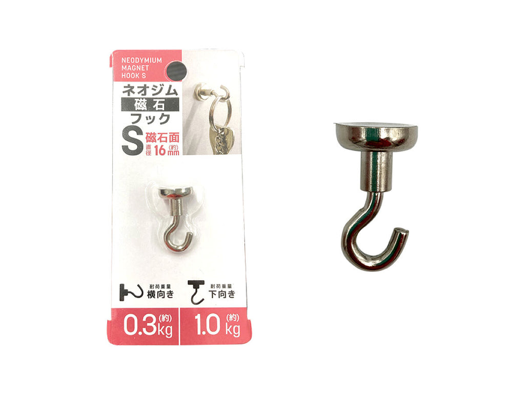 - 商品説明:強力磁石でしっかり固定 下向きでも横向きでも使用できる 超強力マグネット 耐荷重制限はあくまで目安です。取り付け場所の材質・環境により多少異なります。フック耐荷重量_約1.0kg ※耐荷重量はあくまで目安です。取付け場所の材質・環境により変化します。取付け後に荷重以上の負荷が掛からないようにしてください。落下の原因になります。 横向き(約)0.3kg 下向き(約)1.0kg 使用可能な場所 冷蔵庫・洗濯機などの金属塗装面・スチール製品など ※凹凸や湾曲した面では取り付けられません。 ※水回りなどの水滴のつく所ではサビの原因となります。磁石は錆びると磁力が弱まりますので、定期的に確認してください。※ご使用前に必ずお読みください。 ※キズ防止保護フィルムは剥がさずにそのままご使用ください。●取り付け面のホコリ・油分・水分を拭き取ってから使用してください。 ●本品がしっかりと取り付けられていることを確認してから使用してください。●この製品は小型の磁石です。お子様が飲み込んだ場合、腸壁を超えてくっつき、深刻な感染症を起こす恐れがあります。万一磁石を飲み込んだ場合には、すぐに医師の診察を受けてください。●磁石