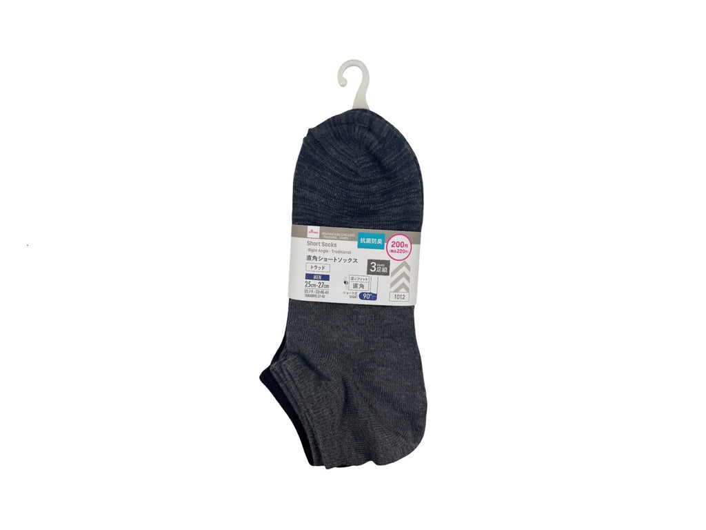メンズショートソックス(抗菌防臭、直角、トラッド、3足組)