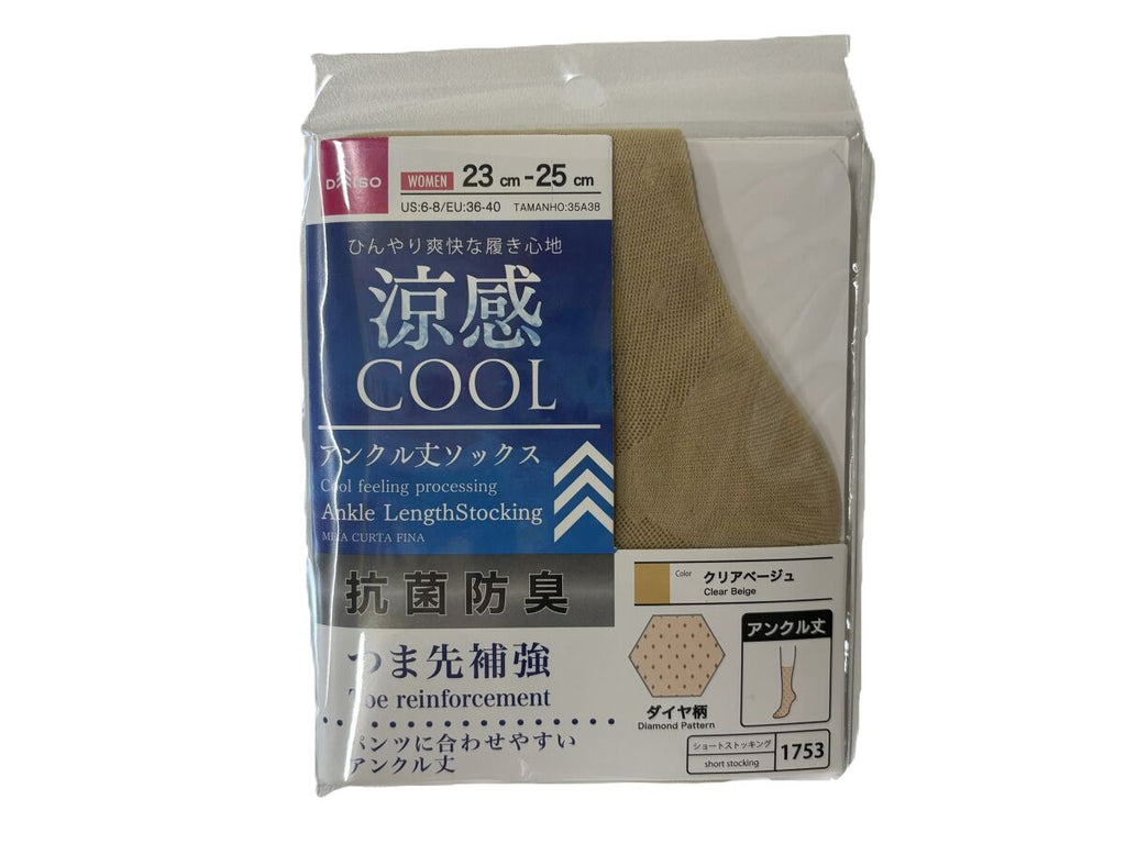 抗菌防臭涼アンクル丈ストッキング(ダイヤ柄、クリアベージュ)23cm―25cm