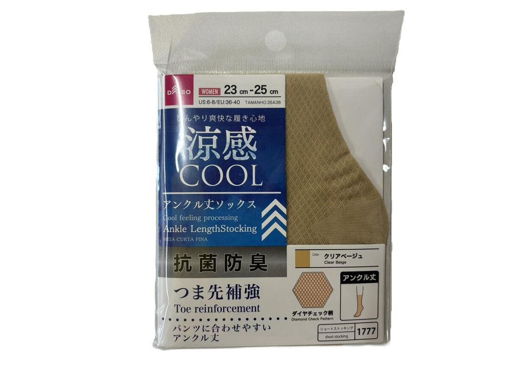 抗菌防臭涼アンクル丈ストッキング(ダイヤチェック柄、クリアベージュ)23cm―25cm