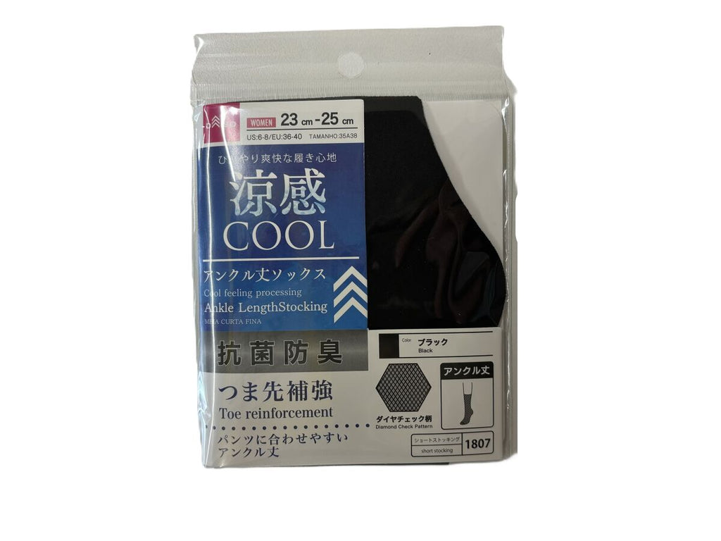 抗菌防臭涼アンクル丈ストッキング(ダイヤチェック柄、ブラック)23cm―25cm
