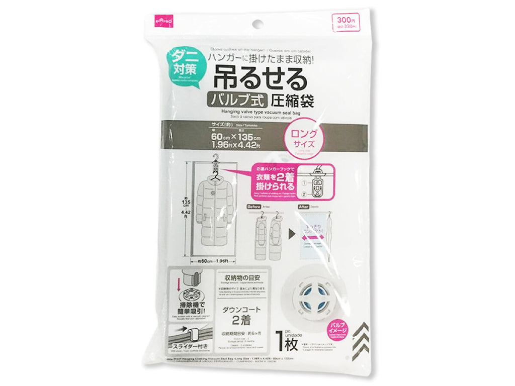 ダニ対策吊るせる衣類圧縮袋(ロングサイズ、60cm×135cm)