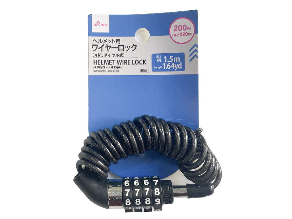 ヘルメット用ワイヤーロック(4桁、ダイヤル式)