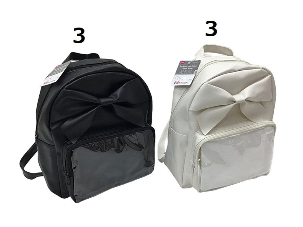 推しバッグ、リボン付リュック(ブラック、ホワイト)