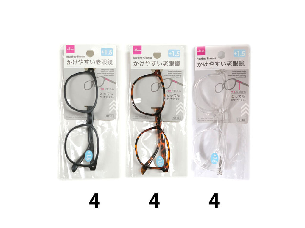 バネ付老眼鏡(ウェリントン、1.5度数)