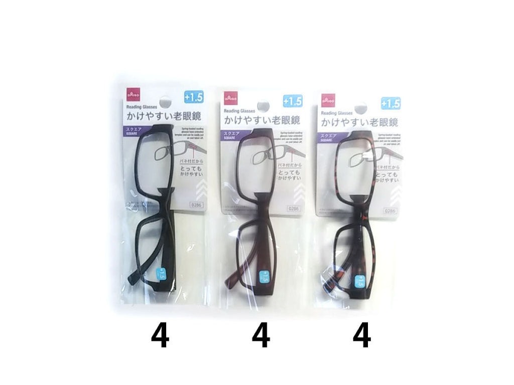バネ付老眼鏡(スクエア、1.5度数)