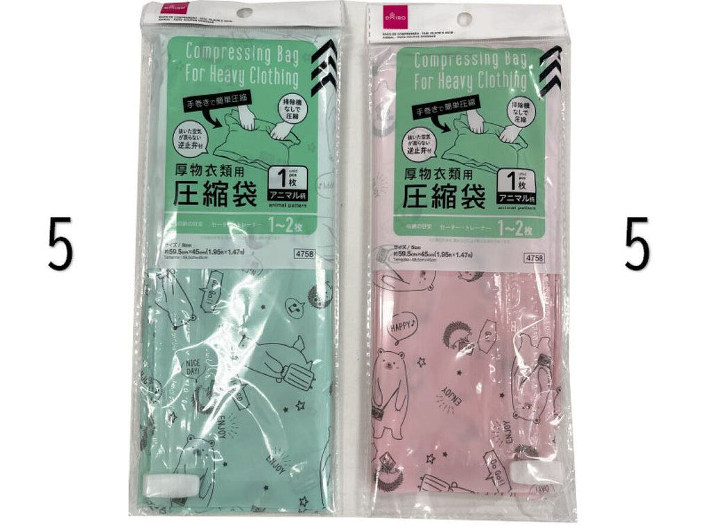 圧縮袋(アニマル柄、厚物衣類用、59.5cm×45cm)