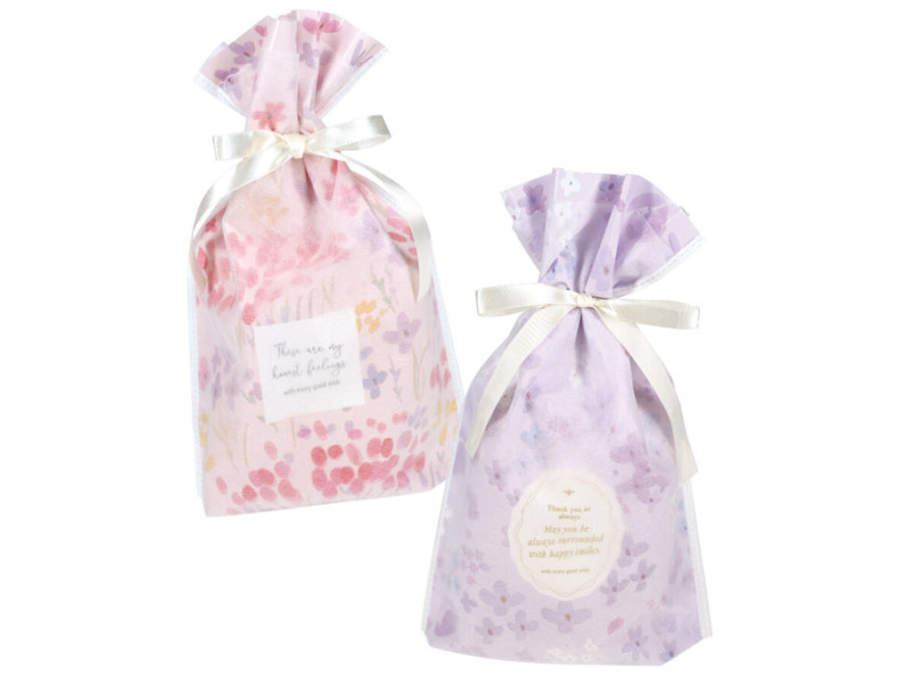 底マチ巾着バッグ(水彩フラワー)30cm×20cm×8cm